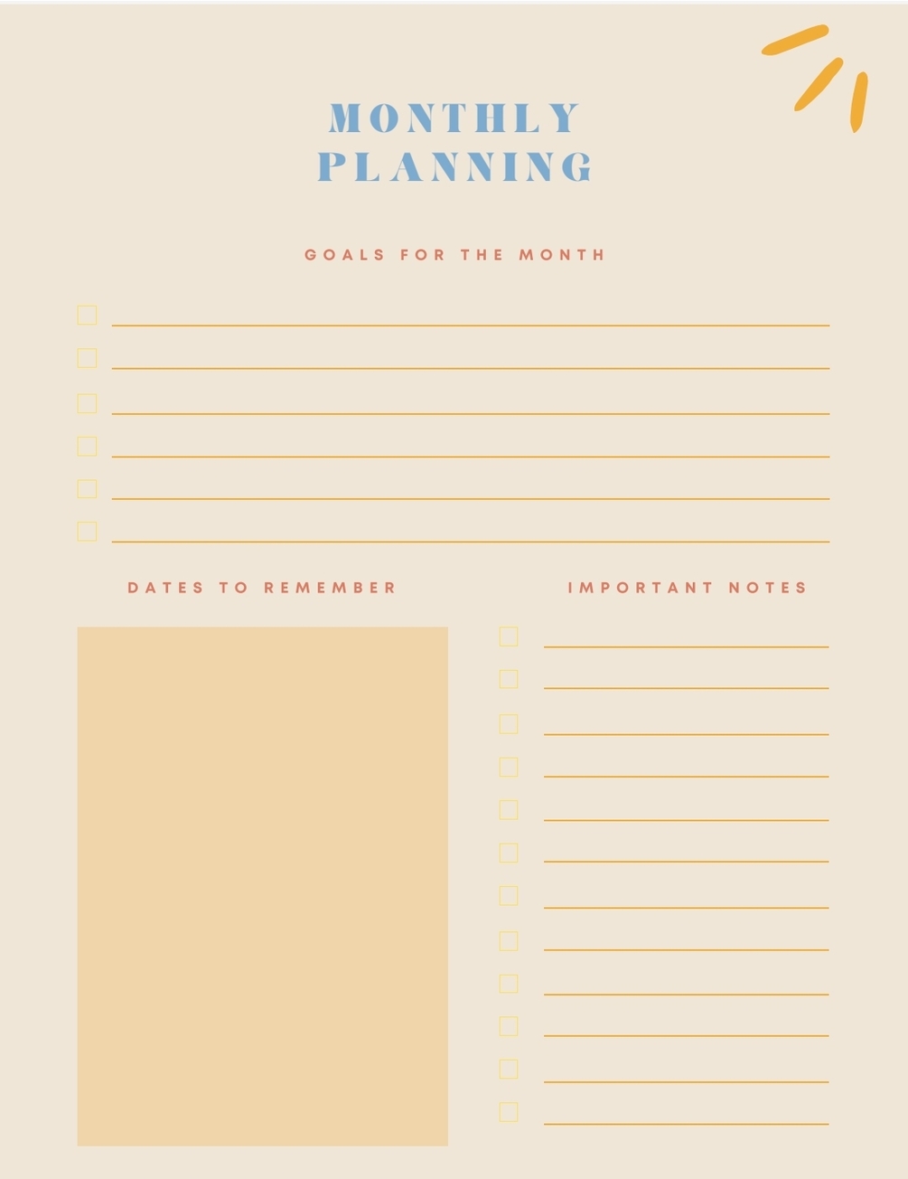 - Monthly planning pages